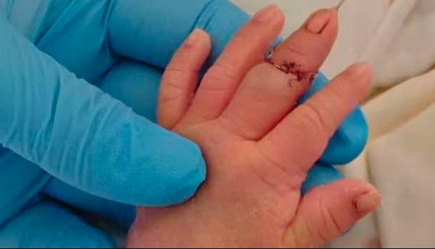 江蘇盱眙縣有新生男嬰一出生即遭遇「橫禍」。盛先生反映,妻子去年12月25日在醫院剖腹產時,助產士竟將新生兒的手指剪斷,事後辯稱是因「孩子手亂動」導致。盛先生表示,兒子接受治療後已接回手指,但他直言無法理解此事,更痛斥醫院犯下「低級錯誤」。他已向當地衛健委申請醫療事故鑑定,希望能為孩子討一個公道。